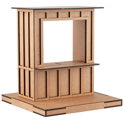 The shop structure will stand 6-1/4"W x 8-1/8"H x 4-1/8"D when assembled and the counter will be 5-3/4"W x 3"H x 2"D. The open counter provides ample miniature storage. Each compartment is approximately 2-5/8”W x ¾”H, making it easy to organize and showcase your tiny tchotchkes, knickknacks, and other tiny treasures.